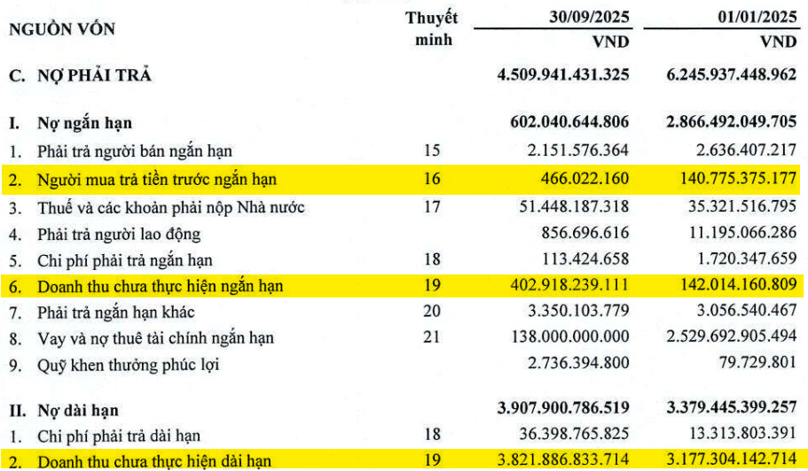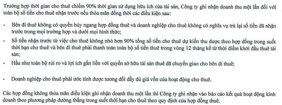 Doanh thu chưa thực hiện dài hạn: 114 tỷ đồng (sẽ ghi nhận dần trong các năm tiếp theo cho đến hết thời hạn thuê vào Quý 3/2064).
