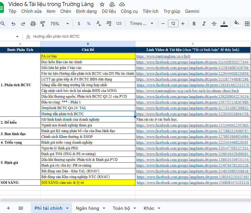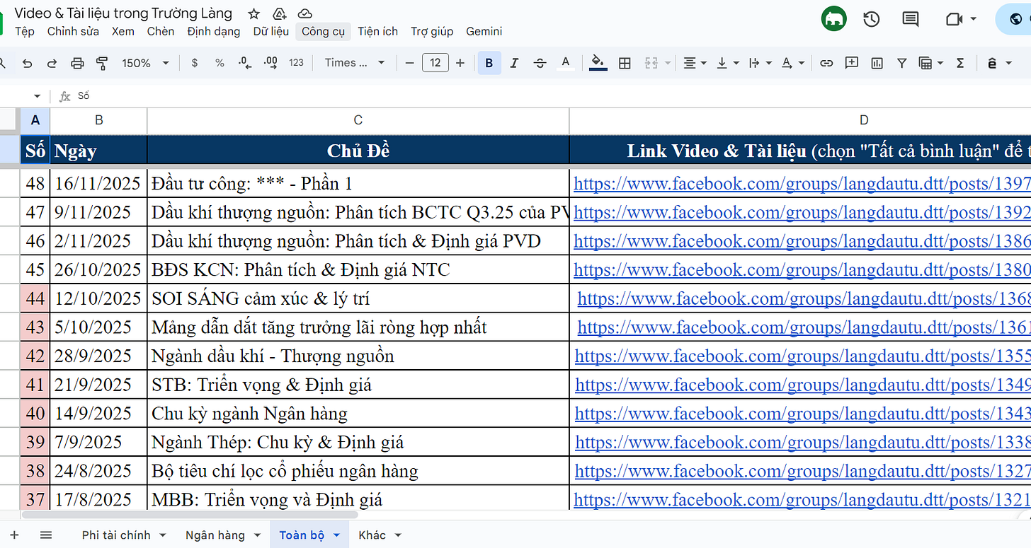 Hành trình học phương pháp phân tích cơ bản của mọi người sẽ kéo dài 12 tháng với 40 buổi học online qua Zoom. ACE cũng có thể xem lại kho video và tài liệu của các buổi học trước trong sheet Toàn bộ (bấm vào hình bên dưới).