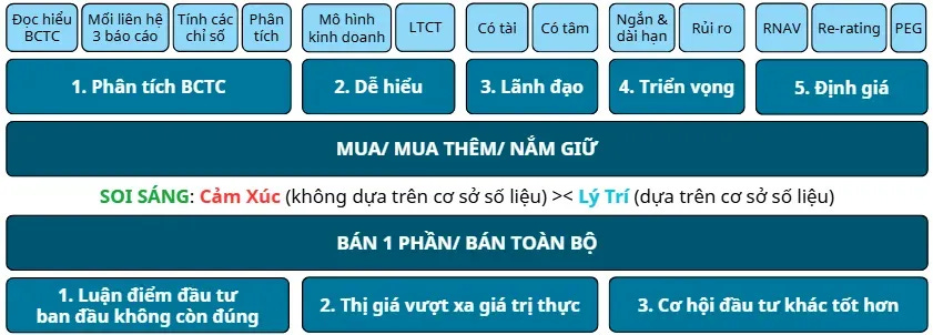 Theo Kiên, nếu mọi người xác định sẽ còn đầu tư trong vài chục năm tới (cụ Warren Buffett năm nay đã 95 tuổi mà vẫn tiếp tục đầu tư), thì việc nghiên cứu qua nhiều doanh nghiệp ở nhiều ngành nghề khác nhau là điều cần thiết. Nhờ vậy, chúng ta sẽ nhận ra một doanh nghiệp đang ở giai đoạn nào của chu kỳ: suy thoái, hồi phục, tăng trưởng hay bão hòa. Khi hiểu được điều này, các quyết định đầu tư sẽ trở nên hiệu quả và tự tin hơn.