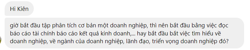 Đáp: Kiên thấy nên bắt đầu từ việc đọc hiểu báo cáo tài chính của doanh nghiệp có sản phẩm hay dịch vụ quen thuộc với mình. Việc đọc hiểu được báo cáo tài chính là nền tảng để: 1/ Biết được mảng kinh doanh nào quan trọng rồi mới đào sâu tránh lan man; 2/ Thấy ra sức khỏe tài chính thực chất của doanh nghiệp (có thể khác xa so với lời ban lãnh đạo nói); 3/ Xem xét khả năng thực thi kế hoạch kinh doanh của ban lãnh đạo; 4/ Đánh giá triển vọng trong tương lai từ những manh mối rất nhỏ; và 5/ Cơ sở để định giá đúng.