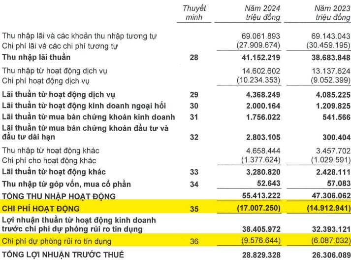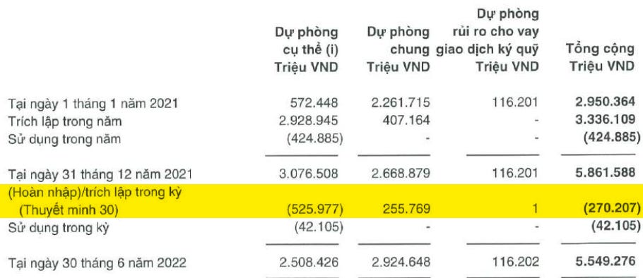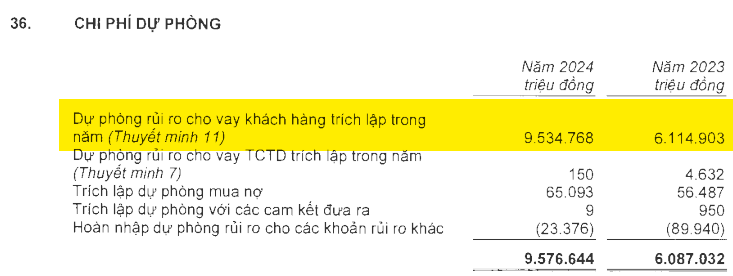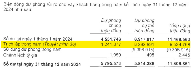 Lưu ý: Tổng dự phòng rủi ro cho vay khách hàng ở đây là phần biến động trong kỳ (xem trong Thuyết minh khoản mục Dự phòng rủi ro cho vay khách hàng), không phải số dư Dự phòng cuối kỳ trên bảng cân đối kế toán.