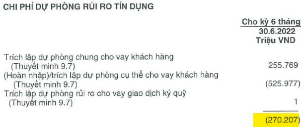 Ngược lại, khi hoàn nhập dự phòng lớn hơn trích lập → tổng dự phòng rủi ro cho vay khách hàng trong kỳ sẽ là số âm → CHI PHÍ dự phòng rủi ro cho vay khách hàng được ghi nhận trên Báo cáo kết quả hoạt động cũng là số âm, qua đó làm tăng lợi nhuận trong kỳ. Trường hợp này nằm trong BCTC soát xét 6 tháng 2022 của ACB.