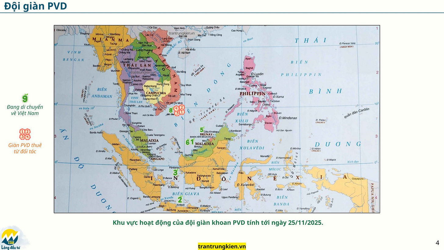Việc gia tăng hàng tồn kho trong kỳ là hợp lý vì PVD mới đưa giàn khoan mới là PV DRILLING VIII vào hoạt động từ ngày 1/9/2025 và thêm 4 giàn khoan thuê ngoài để phục vụ khách hàng trong Q4.25 - một con số rất cao trong nhiều năm gần đây.