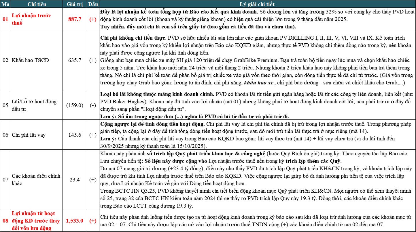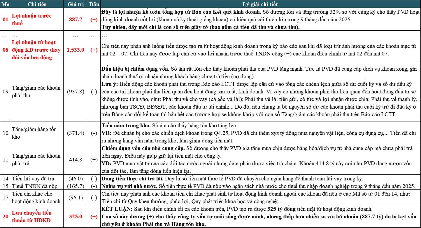 3. Đọc hiểu Báo cáo LCTT của PVD - phần Lưu chuyển tiền từ hoạt động kinh doanh