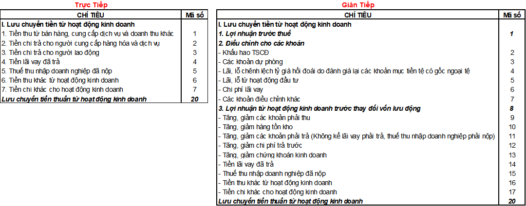 1. Sự khác biệt giữa Báo cáo LCTT theo phương pháp trực tiếp và gián tiếp