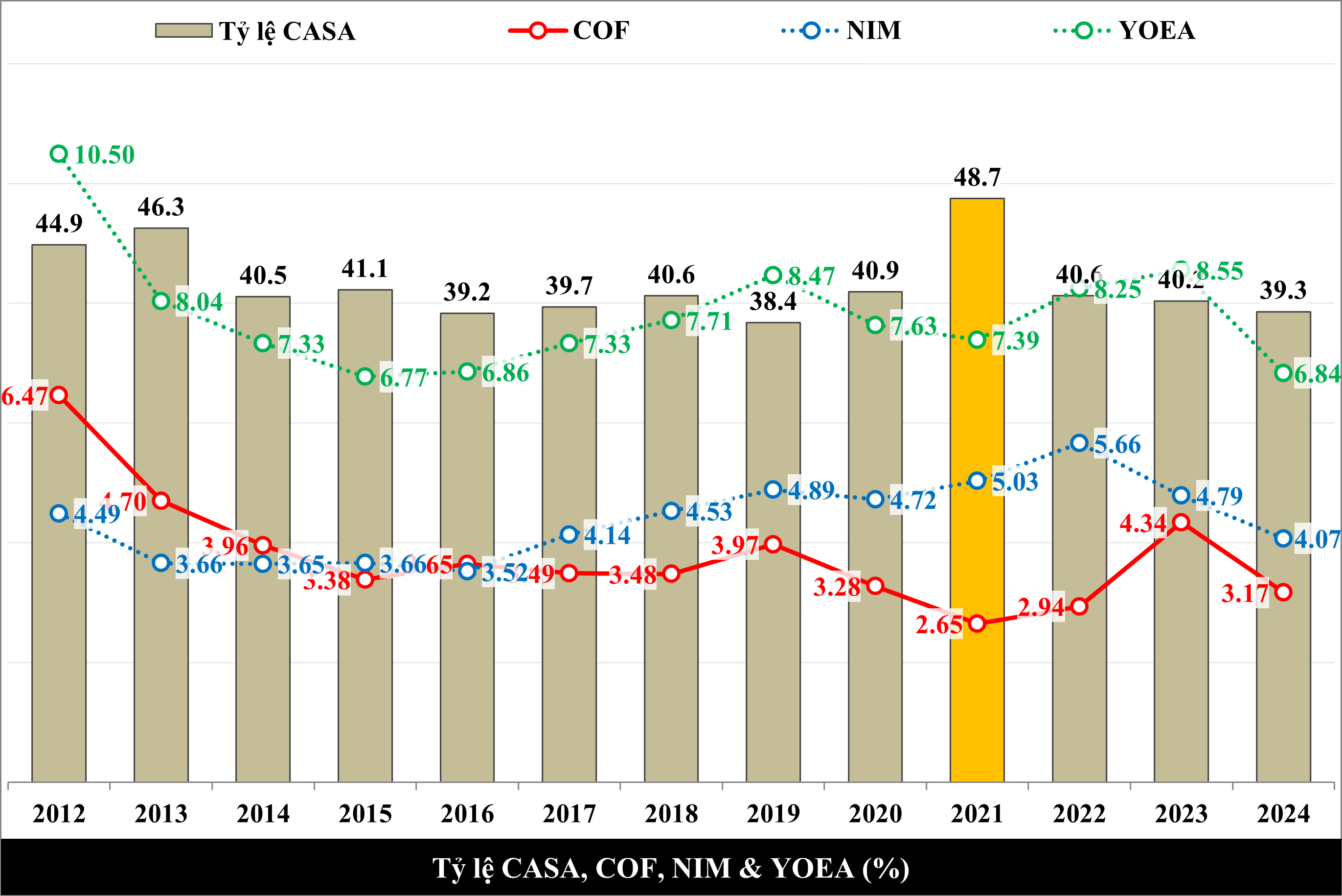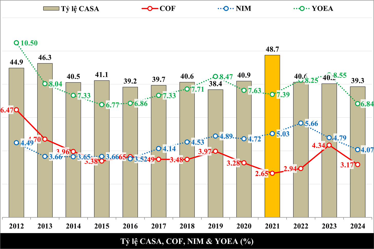 + Tỷ lệ CASA số 1 trong hệ thống ngân hàng tính tới Q2.2025;